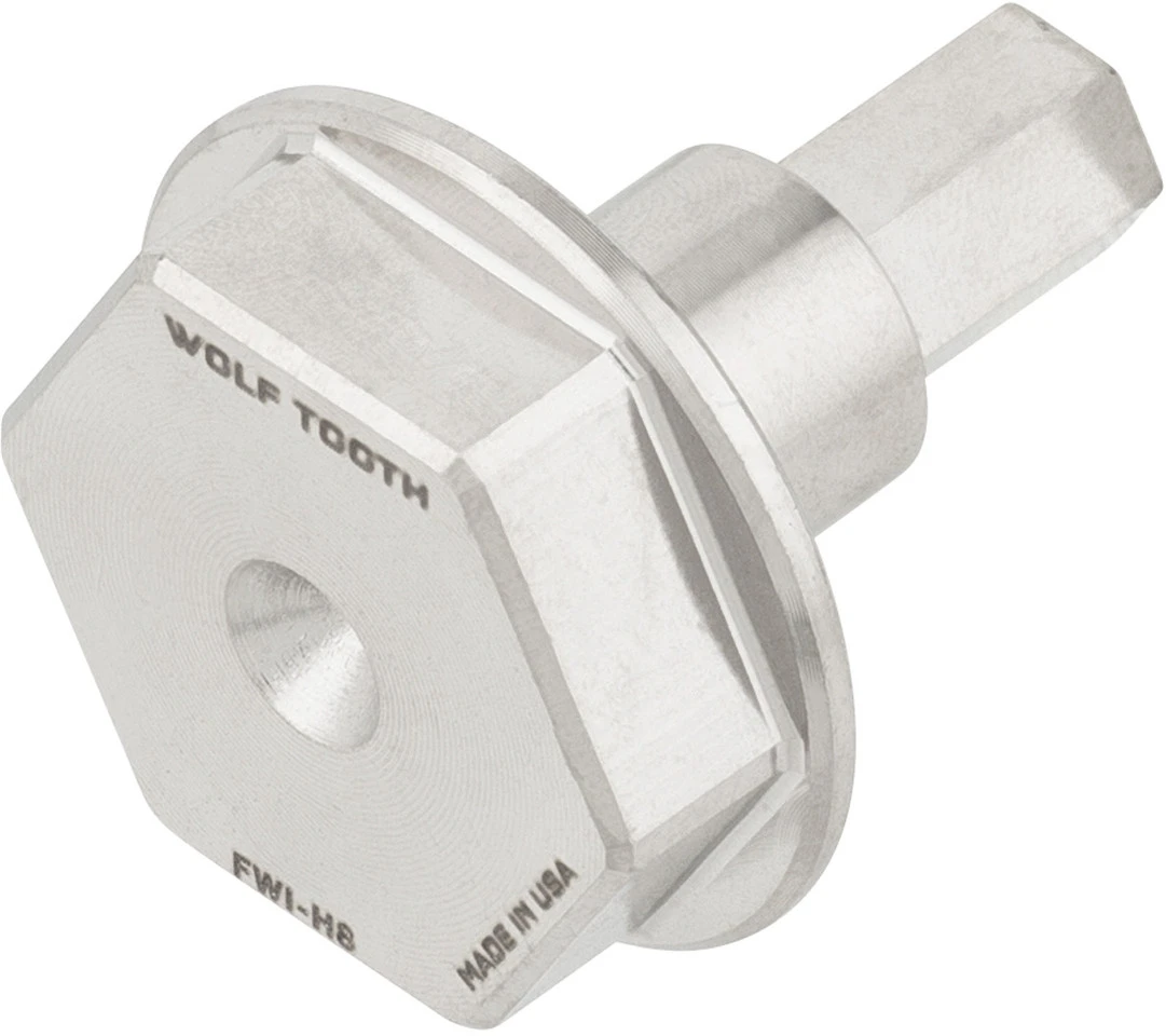 L’insert d’outil Wolf Tooth Components Pack Wrench Steel Hex Insert – en acier trempé et nickelé – est un accessoire pratique pour la clef de boîtier de pédalier Wolf Tooth Pack Wrench.