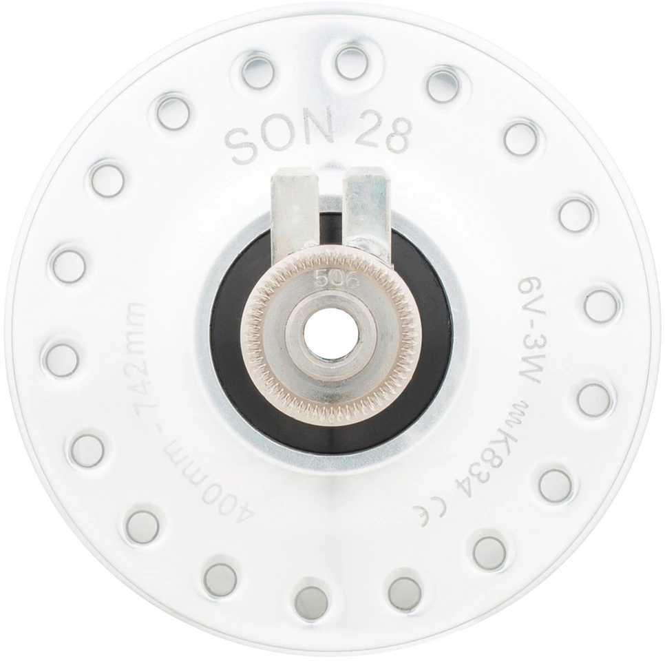 La SON 28 est une dynamo de moyeu universellement approuvée pour toutes les tailles de roue de 16″ à 29″ . Elle atteint sa puissance nominale dans une roue de 28 pouces à environ 16 km/h. Elle est donc recommandé si un niveau de lumière particulièrement élevé est requis lors d’une conduite lente ou si d’autres appareils doivent être utilisés ou leurs batteries chargées. Par rapport à son prédécesseur Son klassik, les pertes au ralenti ont pu être réduites d’environ 15 % et le poids de 140 g.