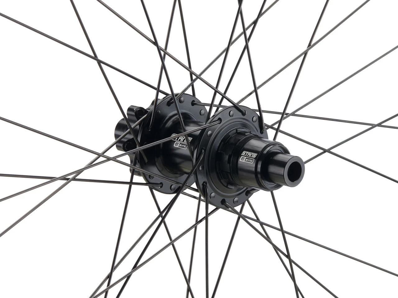 Spécifications :Utilisation :All Mountain, Enduro, DownhillTaille de roue:29″Type de pneu:pneu rigide ou pneu soupleNombre de rayons:32 trousSystème de frein:Disc 6 trous (Boost)Standard de roue:BoostSystème tubeless:Tubeless ReadyInformations techniques – jante :Type :Flow S2 DiscRebord de jante:avec crochetDimension (ETRTO):30-622Largeur de jante, intérieur:30 mmLargeur de jante, extérieur:34 mmHauteur de jante:18,2 mmDiamètre effectif de la jante:603 mmDiamètre d’orifice de valve:SV (6,5 mm)Matériau de la jante:aluminium (6061)Informations techniques – moyeu avant :Type :E-SyncLargeur :axe traversant de 15 x 110 mmMatériau du corps de moyeu:aluminiumInformations techniques – moyeu arrière :Type :E-SyncLargeur :axe traversant de 12 x 148 mmMatériau du corps de moyeu:aluminiumSystème de roue libre:à cliquetsInformations techniques – rayons :Entrelacement roue avant:triplement croiséEntrelacement roue arrière:triplement croiséType de rayon:Sapim Race Black / J-Bend / renforcés (2,0 mm – 1,8 mm -2,0 mm)Matériau des rayons:acier inoxydableType d’écrou:Sapim Polyax Secure Lock 2.0Matériau des écrous:laitonAutorisations :Limite de poids:113 kg (poids du cycliste)Pression (max.):2,7 bars (2,3″ ), 2,3 bar (2,6″ )Largeur de pneu recommandée:2,3 – 2,6″Informations sur les couleurs :Jantes : noiresMoyeux : noirsRayons : noirsÉcrous : argentéVersions :Set de 29″ (avant 15×110 Boost + arrière 12×148 Boost) Shimano Micro Spline :