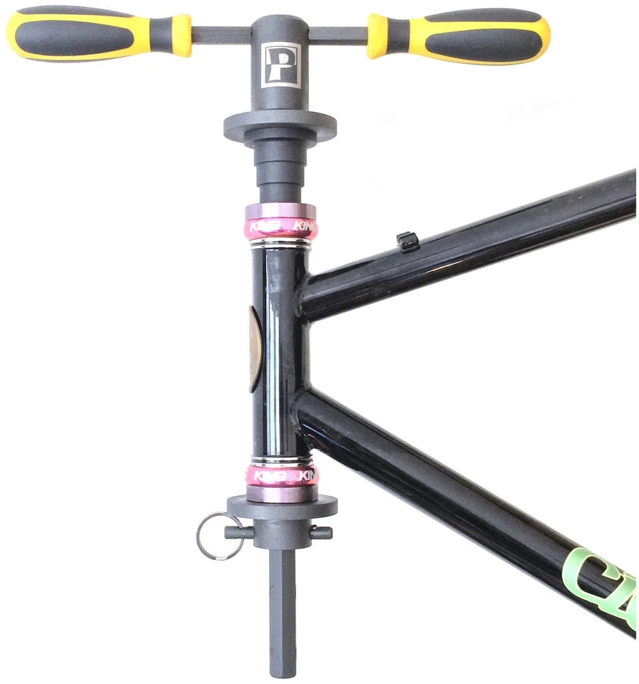 L’outil emmanche-étoile permet d’emmancher uniformément les cuvettes de jeu de direction de 1″ , 1 1/8″ , 1 1/4″ et 1,5″ .