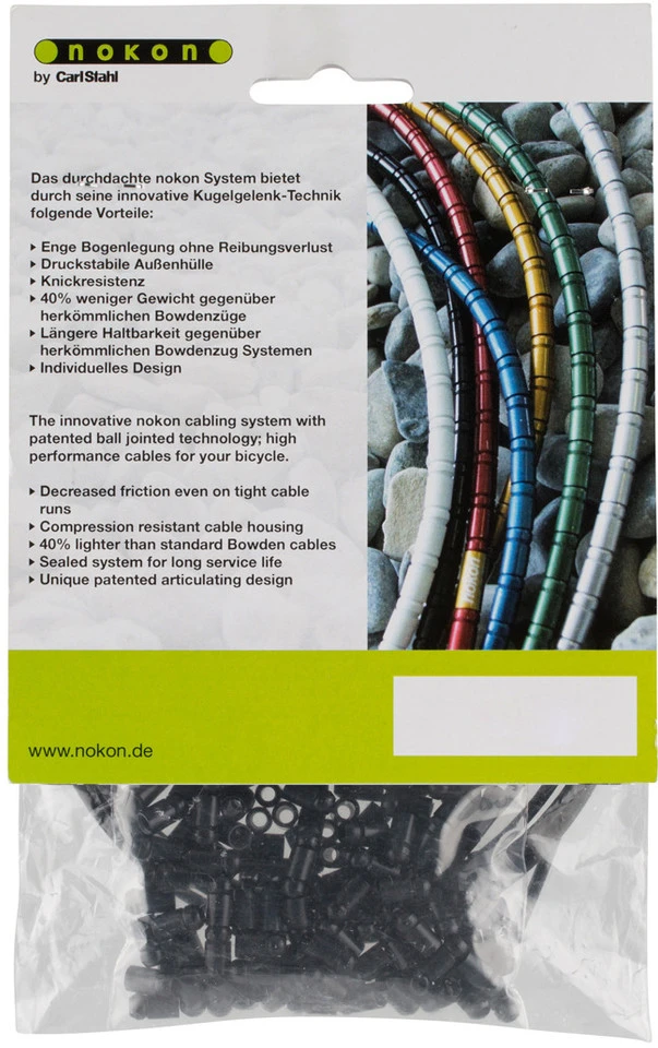 Remarque :Le Speedhub Rohloff nécessite généralement 2 set de transmission de base VTT et 1 à 2 rallonges en fonction de la taille du cadre et de l’acheminement des câbles (mesurer exactement).Contenu :maillons Konkavex Nokon, perles incluses (longueur totale 1 m)1 x liner Nokon 1,7 mm