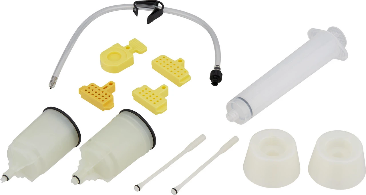 1 x seringue de purge Shimano TL-BR0011 x entonnoir pour huile Shimano TL-BR002 pour les leviers de frein ST1 x entonnoir pour huile Shimano TL-BR003 pour les leviers de frein BL1 x tuyau avec embout de purge1 x clip pour tuyau2 x pied d’entonnoir2 x capuchon d’entonnoir2 x bouchon d’huile4 x blocs de purgeCommande également :huile minérale Shimano