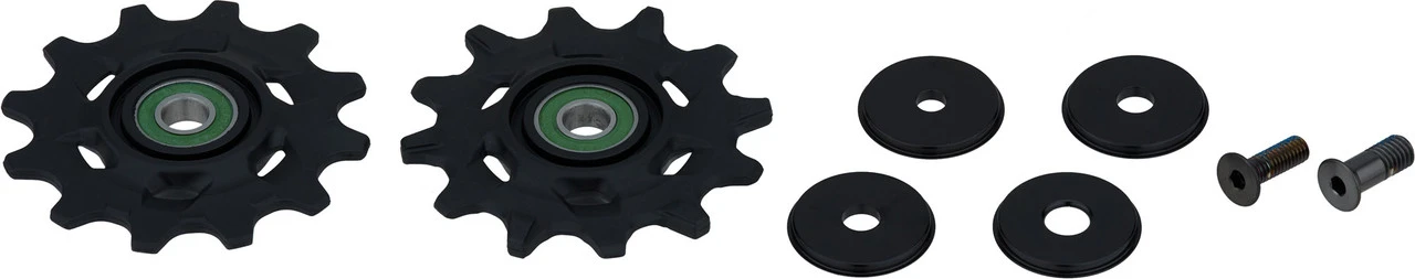Contenu :2 x galets de dérailleur SRAM pour dérailleur arrière Red XPLR eTap AXS4 x bagues entretoises SRAM aluminium2 x vis