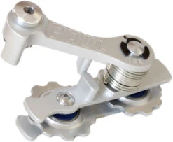 Informations techniques :Matériau (chape):aluminium (6061)Matériau (galets de dérailleur):aluminiumÉpaisseur (galets de dérailleur):2,25 mmRoulement (galets de dérailleur):roulement industriel, étanchéifiéLigne de chaîne :19 – 27 mmPignon (max.):20 dentsCaractéristiques :permet l’utilisation de roues arrière Single Speed sur les cadres à pattes verticalesgarantit une tension optimale de la chaîne en combinaison avec des plateaux de 20 dents au maximumles entretoises permettent de régler la ligne de chaîne optimaleles galets de dérailleur ont un peu de jeu latéral pour compenser les légères déviations de la ligne de chaîneles galets de dérailleur de 2,25 mm d’épaisseur conviennent pour une large gamme de chaînes, y compris les chaînes Single Speed de 1/8″Numéros du fabricant :black:PC200BLACKsilver:PC200SILVERContenu :1 x tendeur de chaîne PAUL Melvin Chain Tensioner