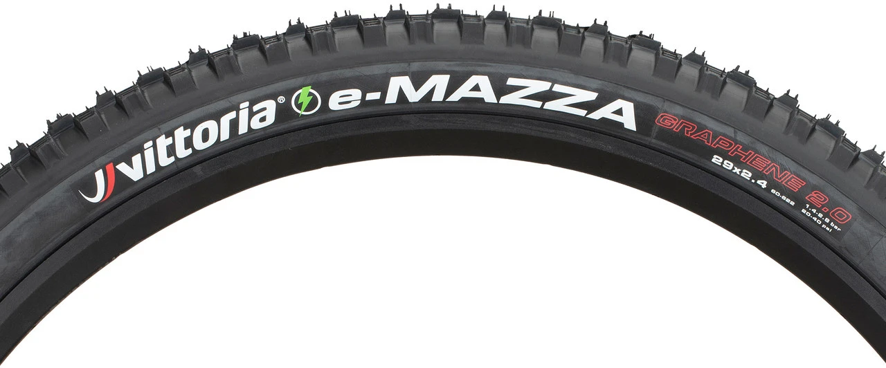 Le pneu souple e-Mazza Enduro 2-ply TLR G2.29 de Vittoria a une résistance au roulement réduite grâce au composé Graphene 2.0. et confère donc une plus grande autonomie à la batterie.